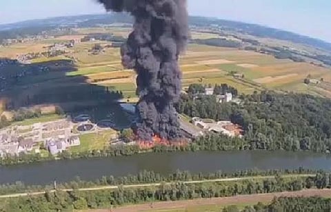 بالفيديو.. طائرة من دون طيار تصور حريقاً هائلاً في مصنع بالنمسا