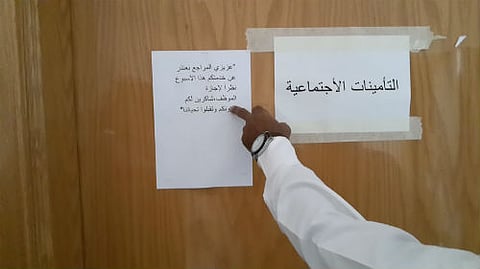 وأوضح بعض المراجعين، لـ "سبق"، أنهم منذ يوم الأحد وهم يواجهون مشكلة إغلاق مكتب التأمينات الاجتماعية بالمحافظة، متذمرين من تعطُّل أعمالهم وتأخُّر إنهاء معاملاتهم بسبب إجازة الموظف الوحيد بالمكتب، التي تستمر طوال هذا الأسبوع دون تأمين بديلٍ له.