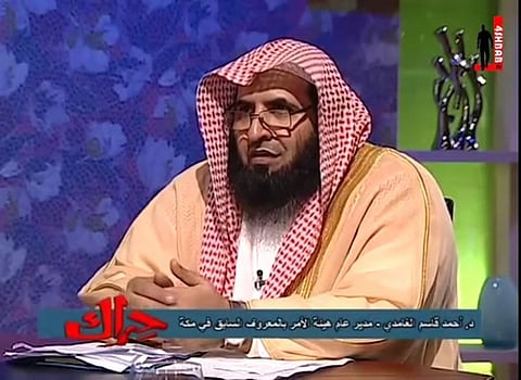 عبدالحكيم شار- سبق- متابعة: في حلقته المثيرة للجدل من برنامج "حراك" الذي يُعرض على "MBC"، خرج مدير هيئة الأمر بالمعروف والنهي عن المنكر بمكة المكرمة سابقاً الشيخ أحمد قاسم الغامدي، مواصلاً معاركه المشتعلة حول النقاب ليردّ على منتقديه، مؤكداً أن شائعة موته كان هدفها التشويش، وأن صورته مع الأوروبية الشقراء صحيحة ولم يلتصق بها جسدياً وأسرته تعتزّ بها، مشيراً إلى أن زوجته تحفظ ٢٠ جزءاً من القرآن ومتون أمهات الكتب، مبيناً أن ظهوره مع زوجته على برنامج "بدرية" لم يكن تحدياً لأحد، بل كان هدفه الاقتداء -على حد زعمه- برسول الله!