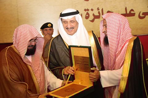 وكان أمير منطقة جازان الرئيس الفخري لجمعية تحفيظ القرآن الكريم الخيرية بالمنطقة الأمير محمد بن ناصر بن عبدالعزيز، قد رعى، مساء أمس، الحفل الختامي السنوي لتكريم حفظة كتاب الله الكريم الذي نظمته الجمعية على جائزته؛ بحضور الرئيس العام لشؤون المسجد الحرام والمسجد النبوي الشيخ الدكتور عبدالرحمن بن عبدالعزيز السديس.