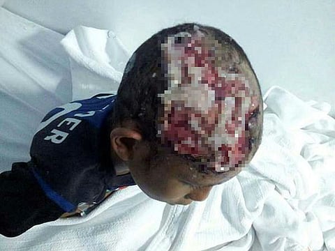 وكانت مواقع التواصل الاجتماعي قد تداولت صورًا مع رسالة للطفل ذي الرأس المسلوخ، جاء فيها أنه يرقد في المستشفى برفقة والدته المطلقة، وأن أباه قد قام بسلخ رأسه ورش مادة كيميائية عليه.