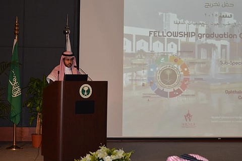 وألقى الطويرقي كلمةً، هنأ فيها الخريجين وأقرباءهم، مؤكداً أنَّ برنامج الزمالة في طب العيون السعودي للتخصص الدقيق يُعد أول برنامج زمالة على مستوى السعودية، ويستمر سنوات طويلة، منها أربع سنوات زمالة، ثم سنتان في التخصص الدقيق، يُلزم فيها الطبيب بتقديم بحوث علمية، وإنجاز بحث أساسيلكلِّ عام من التدريب، بعدها يتمكَّن من الحصول على شهادة البورد السعودي للتخصص الدقيق بعد إكماله سنتين من التدريب بنجاح.