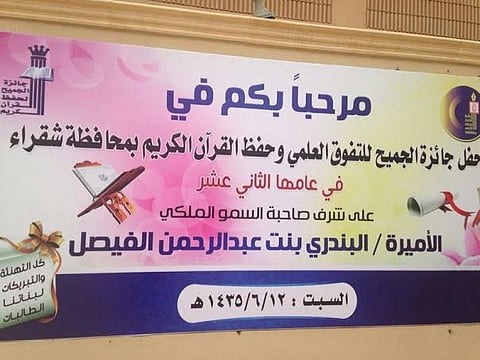 فلاح الجوفان - سبق - شقراء: احتفلت جائزة "الجميح للتفوق العلمي وحفظ القرآن الكريم" اليوم السبت الموافق ١٢ / ٦ / ١٤٣٥ بطالبات محافظة شقراء المتفوقات والحافظات لكتاب الله الكريم برعاية من الأميرة البندري بنت عبد الرحمن الفيصل.