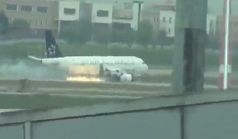 وأظهرت لقطات لتلفزيون "تي آر تي"، الذي تديره الدولة، الطائرة وهي تهبط بمطار أتاتورك، مخلفة وراءها شرراً ودخاناً.