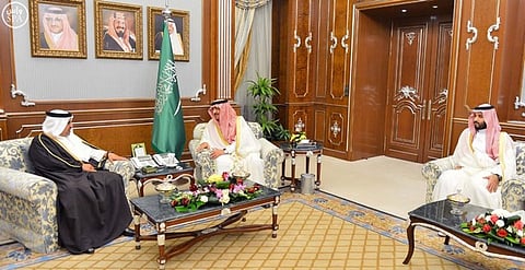 وهنأ الأمير سلمان بن حمد والوفد المرافق خلال الاستقبال الأمير محمد بن نايف بن عبدالعزيز بمناسبة اختياره ولياً للعهد وتعيينه نائباً لرئيس مجلس الوزراء وزيراً للداخلية رئيساً لمجلس الشؤون السياسية والأمنية، والأمير محمد بن سلمان بن عبدالعزيز بمناسبة اختياره ولياً لولي العهد وتعيينه نائباً ثانياً لرئيس مجلس الوزراء وزيراً للدفاع رئيساً لمجلس الشؤون الاقتصادية والتنمية، وتمنياتهم بدوام التوفيق والسداد لخدمة المملكة العربية السعودية وشعبها في ظل القيادة الحكيمة لخادم الحرمين الشريفين ـ حفظه الله ـ.