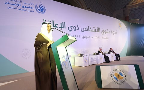 وأشار إلى أنَّ رؤية المملكة 2030 تهدف في محاورها وأهدافها إلى تعزيز حقوق الإنسان وحمايتها، بما في ذلك تعزيز حقوق ذوي الإعاقة باعتبارهم شركاء في التنمية.