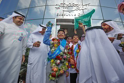 تصوير: مشعل الزهراني: جندت إدارة مطار الملك عبدالعزيز الدولي في جدة طواقمها، بمشاركة عدد من التربويين، لاستقبال الطالب محمد ثنيان الشنبري الفائز بالمركز الأول على مستوى العالم في الخوارزمي الصغير ، وزميله ماجد الطويرقي الحاصل على المركز الثالث ، حيث تقرر إفساح المجال أمامه عبر سيارة خاصة نقلته من مدرج الطائرة ليكون الاستقبال لهما في منصّة كبار الزوار.