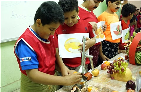 وأقام برنامج "حامض حلو"، قسم فيه الطلاب إلى مجموعة من الواحات، تقدم كل واحدة، طبق فواكه، ومجموعة من العصائر بطريقة إبداعية، وألوان جذابة، تشارك فيها جميع طلاب الواحة؛ لغرس قيمة التعاون، والتعريف بفوائد الفواكه، والتدريب على تسويق المنتجات.