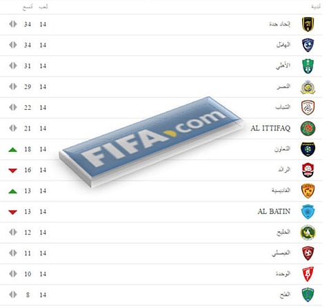 لا يزال نادي الاتحاد يتصدر سُلَّم ترتيب دوري عبداللطيف جميل للمحترفين على الموقع الرسمي لفيفا، على الرغم من تنفيذ عقوبة حسم النقاط الثلاث أمس من رصيده من قِبل الاتحاد السعودي لكرة القدم؛ وذلك بناء على قضية اللاعب "مانسو"؛ وتراجع إثر ذلك إلى الترتيب الثالث بـ31 نقطة، يسبقهأولاً الهلال بـ 34 نقطة، وثانيًا الأهلي.