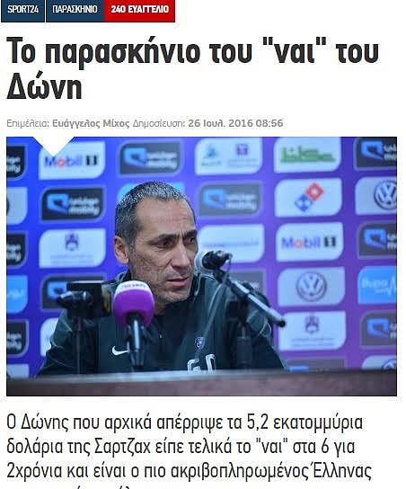وكتبت الصحيفة اليونانية أن دونيس كان يحصل في الهلال على مليون ونصف مليون دولار في الهلال لكن بعد تجربته مع الفريق وتحقيقه ثلاثة ألقاب هي كأس خادم الحرمين الشريفين وكأس السوبر وكأس ولي العهد نجح في البقاء مجدداً في الخليج بضعف ما كان يتحصل عليه مع الهلال .