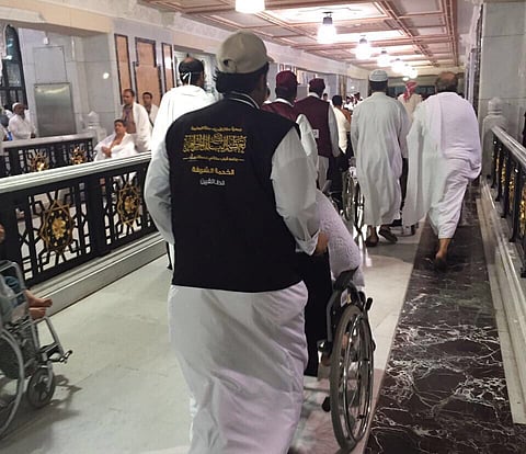 ويضيف: "بينما أنا كذلك إذ جاءني رجلان أحدهما مقعد على كرسي متحرّك يود مني أن أساعده على أداء السعي فقبلت، وأبلغت المشرف على العمل أنني سأقوم بمساعدته.