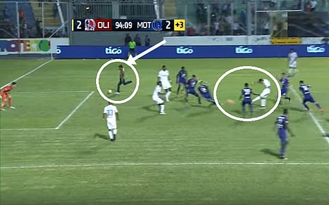 فأثناء مباراة أولمبيا وموتاغوا، وهما اثنان من أكبر الفرق في هندوراس، تسلل أحد المشجعين إلى الملعب حاملاً كرة، واقترب من المرمى قبل أن يسددها في الشباك.