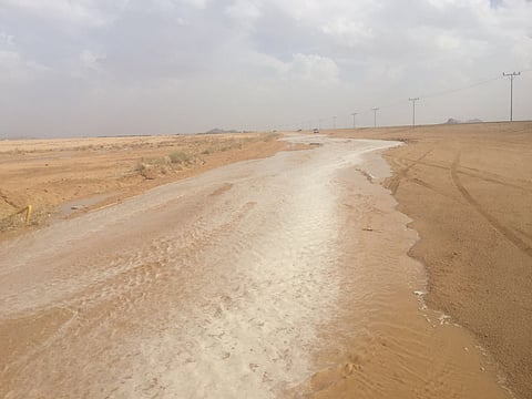 كما جرى وادي "الحثاقي" شمال محافظة المجمعة، إثر الأمطار التي هطلت مساء اليوم.