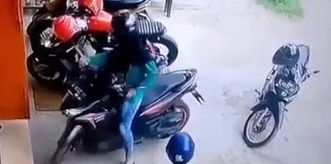 رصد فيديو التقطته كاميرا مراقبة موقفاً محرجاً تعرضت له شابة إندونيسية حين كانت تحاول الانطلاق بدراجتها النارية المركونة بين مجموعة من الدراجات الأخرى.