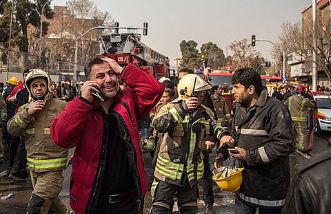 انهار عمال الإطفاء ودخلوا في نوبات من البكاء بعد فشلهم في إطفاء مبنى في طهران مكون من ستة عشر طابقا ولا يزال العشرات من عمال الإطفاء والإنقاذ تحت الأنقاض؛ لضعف التدريب والدعم الذي تتلقاه المؤسسات بالداخل الإيراني.