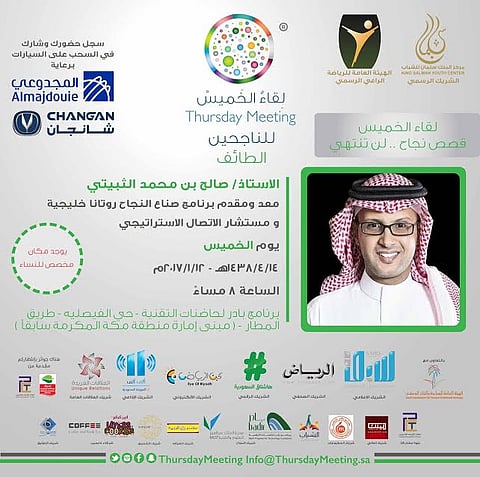 يُذكر أن "لقاء الخميس" للناجحين يحظى بشراكة رسمية من مركز الملك سلمان للشباب، ورعاية من الهيئة العامة للرياضة، وتغطية إعلامية دائمة وشراكة من صحيفة "سبق".