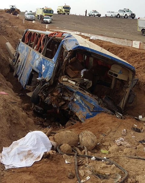 وقال المتحدث الرسمي لهيئة الهلال الأحمر السعودي بمنطقة المدينة المنوّرة؛ خالد بن مساعد السهلي، إن عمليات الهيئة بالمنطقة (٩٩٧) تلقت في الساعة ٠٧:٣٦ من صباح اليوم، ما يفيد بوقوع حادث لحافلة، واحتمالية وجود أكثر من ٤٠ حالة بالموقع.