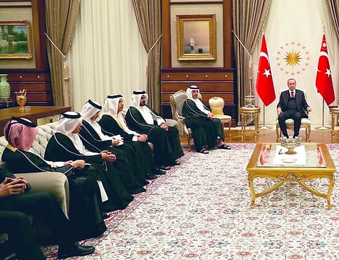 أثار استقبال الرئيس التركي رجب طيب أردوغان، وفدًا قطريًّا برئاسة رئيس الوزراء القطري في العاصمة أنقرة؛ جدلًا كبيرًا وردود فعل واسعة، بعد أن أظهرت الصور عدم وجود العلم القطري في الخلفية، فضلًا عن جلوس أردوغان في المنتصف، ورئيس الوزراء القطري على مسافة بعيدة منه بشكل مخالف للبروتوكولات الرسمية المعتادة في استقبال الوفود الرسمية رفيعة المستوى.