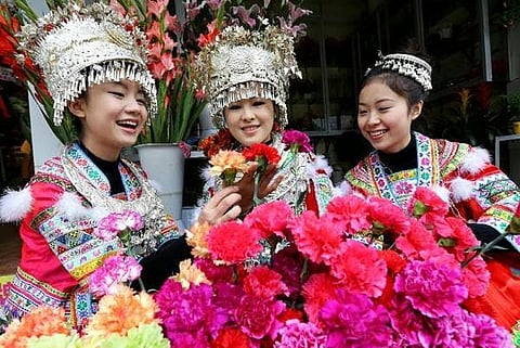 وفي مقاطعة ليشان، وتحديدًا في قرية شينجيانغ يعيش شعب المیاو الذي يقيم مهرجانًا غريبًا للاحتفال السنوي بالعام الجديد ويسمى "مھرجان غوانغ"، ويقام حسب اعتقادهم كل 13 عامًا، وفيه تسیر نساء المیاو في مواكب بعباءاتھن التقلیدیة وحلیھن الفضية، وتظهر فيه النساء وهن يزين أنفسھن بالكثير من الفضة تصل أوزانھا ما بين 10 إلى 15 كجم، ويجذب السياح من داخل الصين وآسيا.