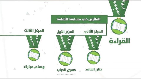 وحصل على المركز الأول في مسار القراءة "حسين الحباب" والمركز الثاني "حنان الحامد" والمركز الثالث "وسام مبارك فيما حصل على المركز الأول في مسار الشعر "عبد الرحمن باجنيد" والمركز الثاني "عمار البطحاني" والمركز الثالث "عبد الرحمن الأنصاري"، بينما حصل على المركز الأول في مسار القصة القصيرة "سهيلة نور ولي" والمركز الثاني "إسراء ماجد" والمركز الثالث "أشواق عمر".