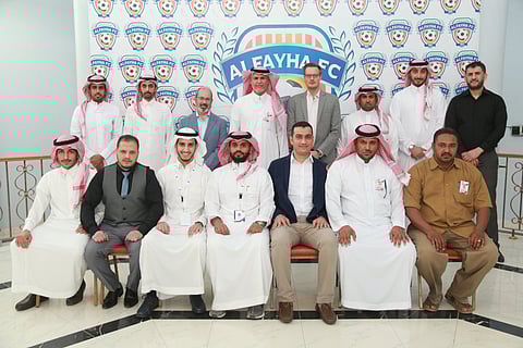وضم الوفد مستشاري إدارة التراخيص بالاتحاد الآسيوي "الألماني" جورين شليم والبرتغالي بيدرو كوريا ومنسوبي إدارة التراخيص في رابطة الدوري السعودي للمحترفين ثامر المرشد ومحمود الخطيب وعبدالله الحسين، وكان في استقبالهم رئيس مجلس الإدارة سعود الشلهوب والمدير التنفيذي للنادي ناصر اليوسف والمدير المالي محمد الدهش وبحضور المعنيين بتطبيق متطلبات الرخصة الآسيوية ومنسوبي العلاقات العامة والإعلام.