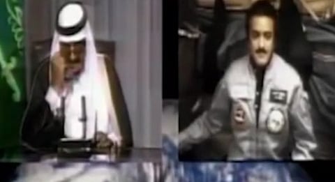 ففي ظهر يوم السبت 22 حزيران من العام 1985م، وبعد أن تحدّث الملك فهد -رحمه الله- بداية إلى سمو الأمير سلطان بن سلمان واطمأن على سلامته وأحواله، ومعرباً في ذات الوقت عن فخره وفخر العرب والمسلمين به وبنجاح مهامه الفضائية، قال -رحمه الله- لسمو الأمير سلطان: "أعطيك أباك.. تحدّث إلى أبيك"، عندها فقط.. بدأ أول اتصال فضائي إنساني في التاريخ شاهده الملايين على الهواء، جمع الأب الشغوف في الأرض بابنه المكلف بعدد من المهام في أعماق الفضاء.