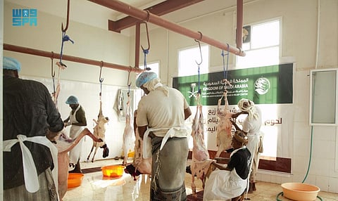 دشن مركز الملك سلمان للإغاثة والأعمال الإنسانية أمس, مشروع توزيع لحوم الأضاحي لأسر الأيتام و الأسر الأشد احتياجًا في مخيم الجفينة للنازحين بمدينة مأرب بمحافظة مأرب؛ حيث جرى أمس توزيع 150 أضحية في المخيم.