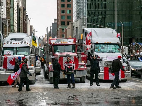 يُذكر أن كندا تشهد احتجاجات عارمة انطلقت رفضًا لإلزام سائقي الشاحنات العابرين لـ"الحدود الأمريكية- الكندية"، بالحصول على اللقاح أو الحجر لأسبوع عند العودة، وقد تصاعدت وتحولت إلى تحد أوسع ضد جميع التدابير الصحية المتعلقة بفيروس كورونا.