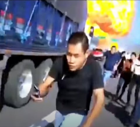على أحد الطرق السريعة بالمكسيك، هبط الناس من سياراتهم وهربوا منها مبتعدين، على بُعد كانت النار مشتعلة في شاحنة لنقل الغاز المسال، بعد ثوان انفجرت الشاحنة وتسببت في مقتل 14 شخصًا.