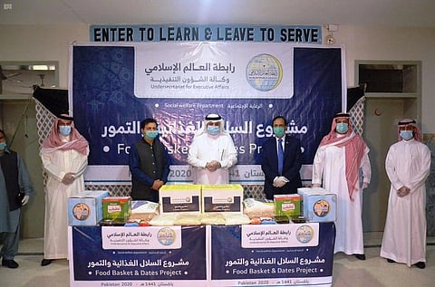 دشنت رابطة العالم الإسلامي، برنامج توزيع السلال الغذائية والتمور في جمهورية باكستان الإسلامية.
