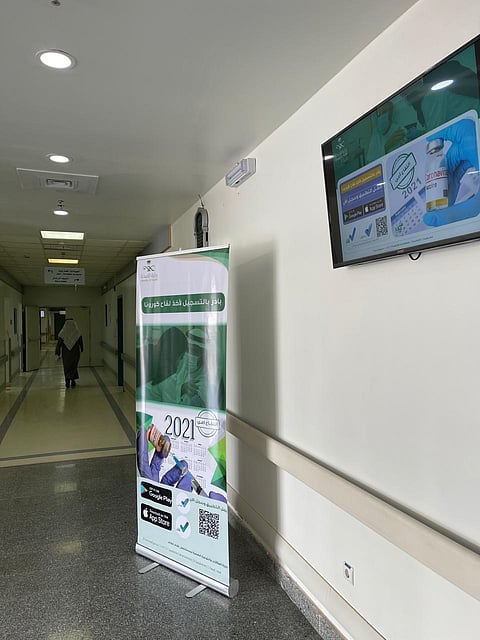 واستثمرت إدارة التوعية الصحية الشاشات الإعلانية في المستشفى ببث الرسائل الإعلانية، كما عرضت لوحات توعوية على مداخل المستشفى الرئيسية وداخل أقسامه، وبثت الرسائل التي تدعو للحصول على اللقاح عبر حسابات المستشفى على قنوات التواصل الاجتماعي.