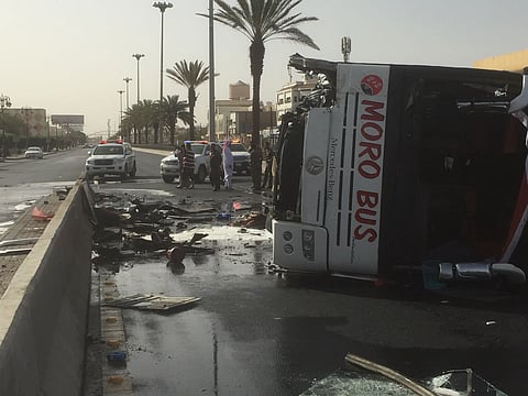 وأوضح المتحدث الرسمي لهيئة الهلال الأحمر بتبوك نبيل العنزي أنه عند مباشرة الموقع من أول فرقة إسعافية بتوقيت 7:26 صباحاً اتضح وجود 36 إصابة، وبعد عملية الفرز الطبي في الموقع تبين وجود 3 حالات حرجة، و4 حالات متوسطة، و8 حالات طفيفة، عولجت في الموقع.