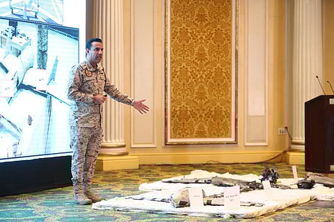 وعرض "المالكي" في المؤتمر الصحفي طائرة من دون طيار إيرانية زودت بها الميليشات الحوثية، مؤكداً بأنهم حاولوا بها استهداف مطار أبها وأحد الأعيان المدنية بجازان واصفاً ذلك بالعمل الإرهابي الجبان. وتوعد "المالكي" الميليشات الحوثية الإرهابية المستمرة في تهديد أمن وسلامة أراضي السعودية ومواطنيها والمقيمين عليها بعمليات عسكرية قاسية ومؤلمة وموجعة.