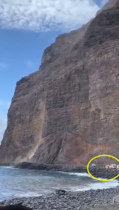 وحسب صحيفة "ميل أون لاين" البريطانية، فُوجئت قافلة سياحية، السبت، بانهيار قطعة من سفح ضخم قُبالة لاغوميرا في جزر الكناري الإسبانية.