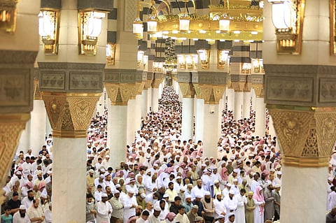 تصوير عمار الأحمدي: شهد أكثر من مليون مُصَلٍّ في رحاب المسجد النبوي الشريف ليلة ختم القرآن الكريم، ليلة التاسع والعشرين من شهر رمضان المبارك، وذلك بإشراف مباشر من أمير منطقة المدينة المنورة، الأمير فيصل بن سلمان بن عبدالعزيز ونائبه الأمير سعود بن خالد الفيصل، وسط استنفار الأجهزة الحكومية ذات العلاقة التي سخرت الإمكانيات البشرية والآلية كافة في خدمة المعتمرين والزوار وقاصدي المسجد النبوي الشريف.