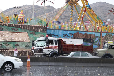 أغلقت شاحنة من نوع "قلاب" الطريق السريع الذي يربط الهدا بوسط المحافظة؛ بسبب هطول الأمطار المتوسطة إلى الغزيرة التي شهدتها المنطقة بعد عصر اليوم، فيما تسبب في إعاقة الحركة المرورية.