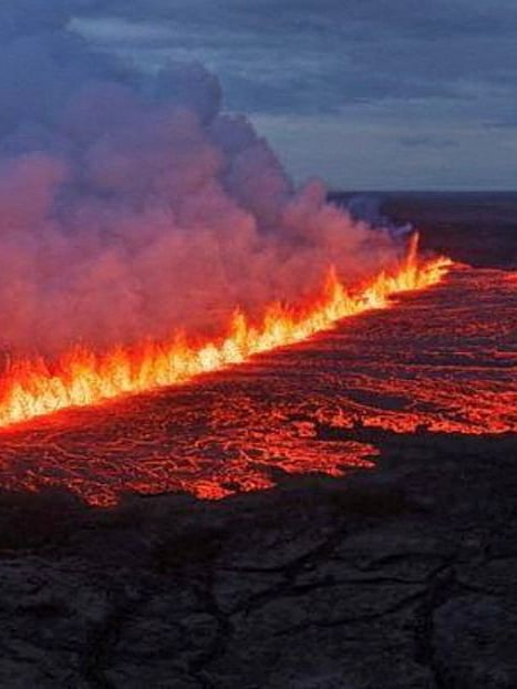الحمم البركانية تخرج من شق في أعقاب ثوران بركاني بالقرب من "جريندافيك" في آيسلندا