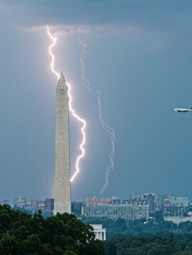صواعق برق تضرب السماء بالقرب من متنزه ناشونال مول في العاصمة الأمريكية واشنطن