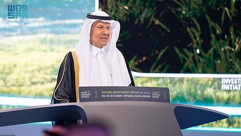 وقدّم خلال كلمته في مؤتمر "مبادرة مستقبل الاستثمار"، لمحة لما قامت به المملكة على مدى عقود في مجال الطاقة، واستثمارها في تطوير قطاع الغاز واحتجازه منذ السبعينات، وما نتج عن ذلك من إيجاد قطاع بتروكيماويات ضخم، وتأسيس مدينتين صناعيتين، وشركة عملاقة هي سابك، والتحول من استهلاك الوقود السائل إلى استخدام الغاز على شكل غاز الميثان ليس لتوليد الكهرباء فحسب وإنما لإنتاج المياه من البحر.