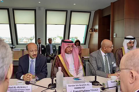 عقد معالي وزير الصناعة والثروة المعدنية، الأستاذ بندر بن إبراهيم الخريف، اجتماعًا مع عدد من المستثمرين ومسؤولي الشركات الفرنسية لمناقشة الفرص الاستثمارية الواعدة في قطاعي الصناعة والتعدين، والعديد من المزايا والممكنات التي تقدمها المملكة للمستثمرين، وذلك في مقر الغرفة التجارية في باريس.