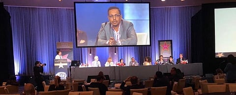 أبهر الطبيب السعودي شادي بن طلال زارع؛ وكيل كلية الطب بجامعة جدة، خبراء الطب في أمريكا، خلال مشاركته بورقة عمل في المؤتمر العالمي لزراعة الشعر بمدينة لوس أنجلوس الأمريكية.