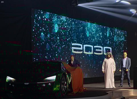 وأعلن آل الشيخ أن "سيارة 2030"، والتي ظهرت بشكل مختلف وعصري وقت الكشف عنها، هي الوحيدة في العالم، وصممت خصيصاً لموسم الرياض، وتحديداً لمعرض الرياض للسيارات، حيث ستطرح في مزاد السيارات وبإمكان زوار المعرض اقتناؤها.