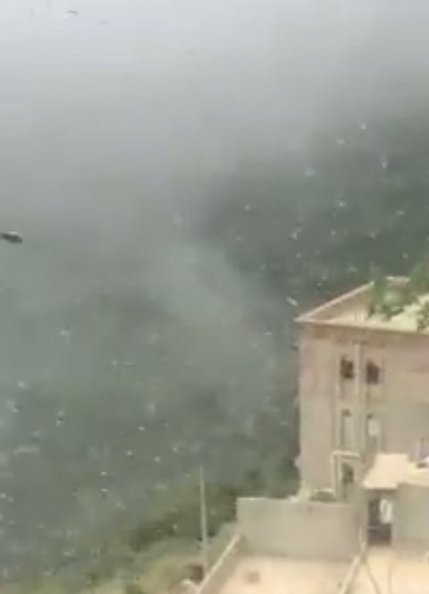 مشهد مخيف لأسراب الجراد لحظة وصولها قمم جبال فيفاء