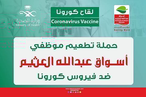 نفذت شركة أسواق عبدالله العثيم أمس السبت حملة تطعيم لمنسوبيها وأفراد عائلاتهم في كل أقسام وإدارات وفروع الشركة بمدينة الرياض، بلقاح كورونا المستجد (كوفيد-١٩) بالتعاون مع التجمع الصحي الأول ضمن مشروع اللقاحات بوزارة الصحة في مقر أكاديمية العثيم، ونفذت الحملة وسط التقيد بكل الإجراءات الاحترازية والوقائية والتباعد بين الموظفين، والذين تم تطعيمهم على دفعات وضمن مواعيد مجدولة مسبقًا.