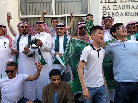 قدمت الهيئة العامة للرياضة، بالتعاون مع وزارة الإعلام، هدايا تذكارية وتعريفية بالسعودية للجماهير من مختلف دول العالم الموجودة في موسكو لحضور منافسات كأس العالم 2018 التي انطلقت الخميس الماضي، وتستمر حتى 15 يوليو المقبل.