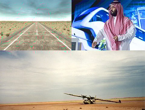 لم يكن أحد يعلم أن الطائرة التي استخدمت في الفيلم الأمريكي "sos pacific" عام 1959 وأصيبت بعطل مفاجئ لتقبع في الصحراء السعودية راسمة لوحة "صحراء وتكنولوجيا" أنها كانت تشير إلى أن مدينة المستقبل ستكون هنا.