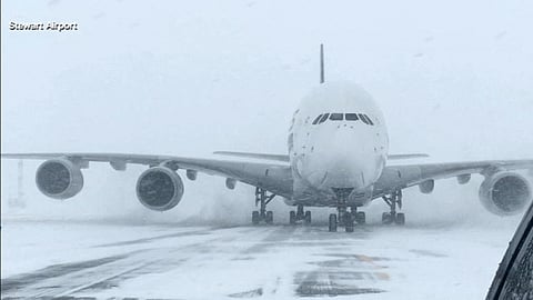 ونقلت "بلومبرج" عن الهيئة الوطنية الأمريكية للطقس أن العاصفة العابرة للقارات، التي تسببت في هطول ثلوج وهبوب رياح عاتية على سهول الغرب والشمال الأمريكي، قد وصلت إلى نيويورك، وقد أصدرت سلطات الطيران بمطار جون كيندي بنيويورك تنبيهًا مرتفعًا للمسافرين والقادمين إلى المدينة خلال هذا الأسبوع، بمراجعة الحجوازات؛ حتى لا يتم خسارة قيمة التذاكر.