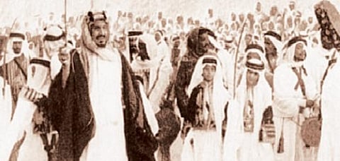 وتمكَّن الملك عبدالعزيز آل سعود عبر رحلة طويلة، أضناه فيها طول المشي والتفكير، من لملمة شتات البلاد، وإعادة الأمن، والتصدي للفوضى التي كانت سائدة في الجزيرة العربية آنذاك، وأصبح بمحبة الناس ملكًا لدولة سهر على بنائها، وأوجد نظامها حتى أصبح لها مواقف مشرفة مع الأمتين الإسلامية والعربية والعالم أجمع.