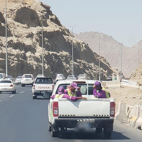 وأظهرت الصورة التي خصّ بها المواطن "سبق"؛ سيارة من نوع "وانيت" تابعة لأمانة العاصمة المقدسة تسير على الطريق الرابط بين مخططات الشرائع ومشعر منى، وعبر "صندوقها الخلفي" ثلاثة من عمال النظافة التابعين للأمانة؛ معرضين أرواحهم للخطر، والتعرض لأشعة الشمس بشكل مباشر.
