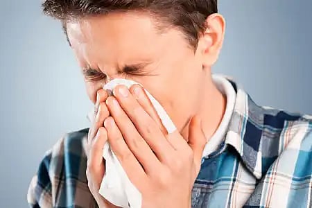 ومن أبرز أعراض حساسية الربيع: (سيلان الأنف، ودموع العيون، والعطاس، والسعال، وحكة في العيون والأنف).